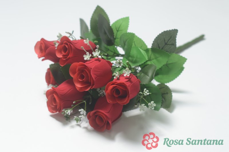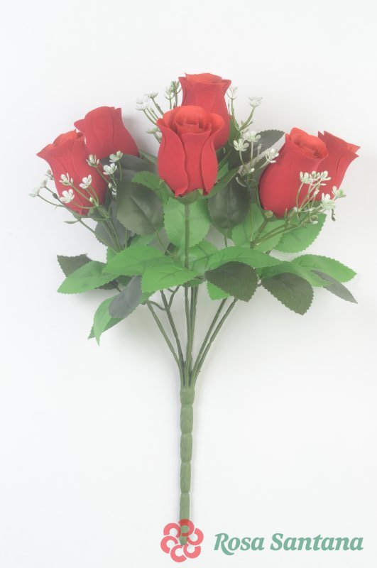 Ветка в букете бутон розы 7 голов (1010237) красный