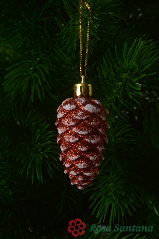 Елочное украшение Шишка с золотом (уп.6 шт) красный